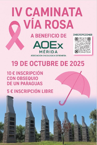 La IV Caminata Vía Rosa tendrá lugar el 19 de octubre con salida a las 11:00 horas con salida del Circo Romano. A beneficio de AOEx (Asociación Oncologica de Extremadura).