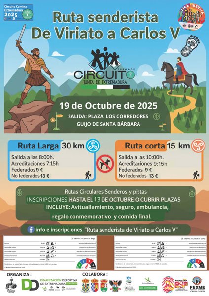 La Mancomunidad Intermunicipal de la Vera, con la colaboración del Área de Dinamización Deportiva de la Vera, los ayuntamientos de Cuacos de Yuste, Aldeanueva de la Vera, Guijo de Santa Bárbara y Jarandilla de la Vera, y el club senderista Cuacos de Yuste, organizan la V Ruta Senderista de Viriato a Carlos V, que tendrá lugar el domingo 19 de octubre de 2025.