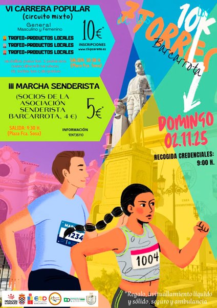 Los 10K de las 7 Torres se celebrarán el 2 de noviembre de 2025 a las 10:30 en Barcarrota, sobre una distancia de 10 km aproximadamente.