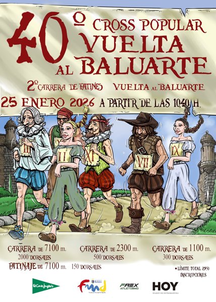 La Fundación Municipal de Deportes del Ayuntamiento de Badajoz organizará el día 25 de enero de 2026, el 40º CROSS POPULAR y 2ª CARRERA DE PATINAJE EN LÍNEA “VUELTA AL BALUARTE”.