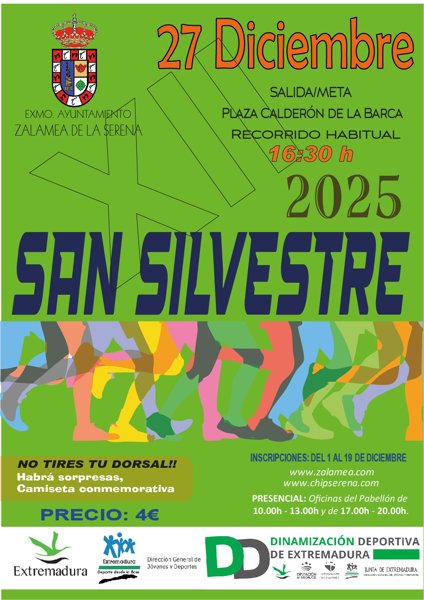 El día 27 de diciembre de 2025 se va a celebrar la XIII SAN SILVESTRE ILIPENSE, que se disputa por las calles de Zalamea de la Serena.