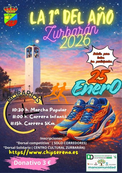 La 1ª del Año de Zurbarán 2026 tendrá lugar el 25 de enero, con salida y meta en la plaza de Guadalupe.