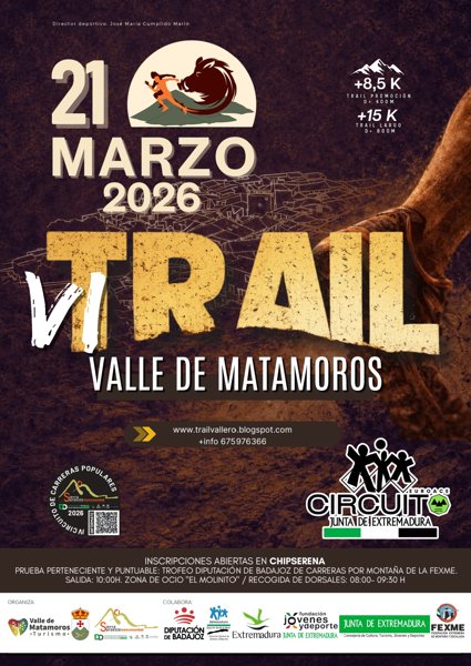 El VI Trail Valle de Matamoros es una carrera de baja montaña que discurre por el entorno de Valle de Matamoros. Está incluida en el circuito de Euroace Sport de la Junta de Extremadura de carreras por montaña 2026 y en el circuito de carreras por montaña de la Federación Extremeña de Montaña y Escalada (FEXME).