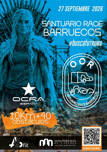 Santuario Race es mucho más que una carrera de obstáculos; es una experiencia única que forma parte del circuito nacional de carreras de obstáculos OCRA ESPAÑA. Este emocionante evento se llevará a cabo en uno de los puntos de la geografía cacereña más importantes, LOS BARRUECOS, un entorno espectacular escenario de juego de tronos y la casa de cigüeñas y un sinfín de biodiversidad maravillosa, donde los atletas se enfrentarán a un recorrido desafiante repleto de obstáculos, que incluyen arrastres, cargas, saltos, suspensiones, equilibrio, pruebas de habilidad y mucho más. Lo que hace a esta carrera verdaderamente especial es que los participantes solo cuentan con su propio cuerpo y habilidades para superar cada reto.