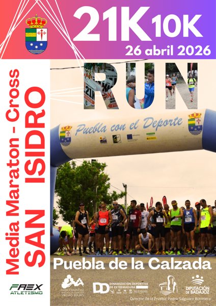 La XV Media Maratón – XII Cross “SAN ISIDRO” tendrá lugar a las 9:30 el 26 de abril de 2026 en la localidad de Puebla de la Calzada.